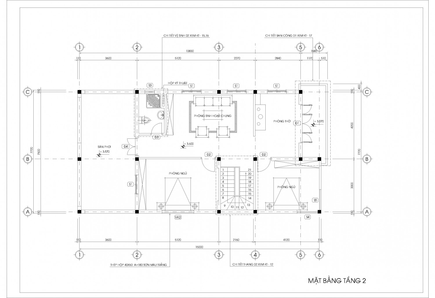 Mặt bằng vật dụng các tầng, mặt cắt, mặt đứng kích thước