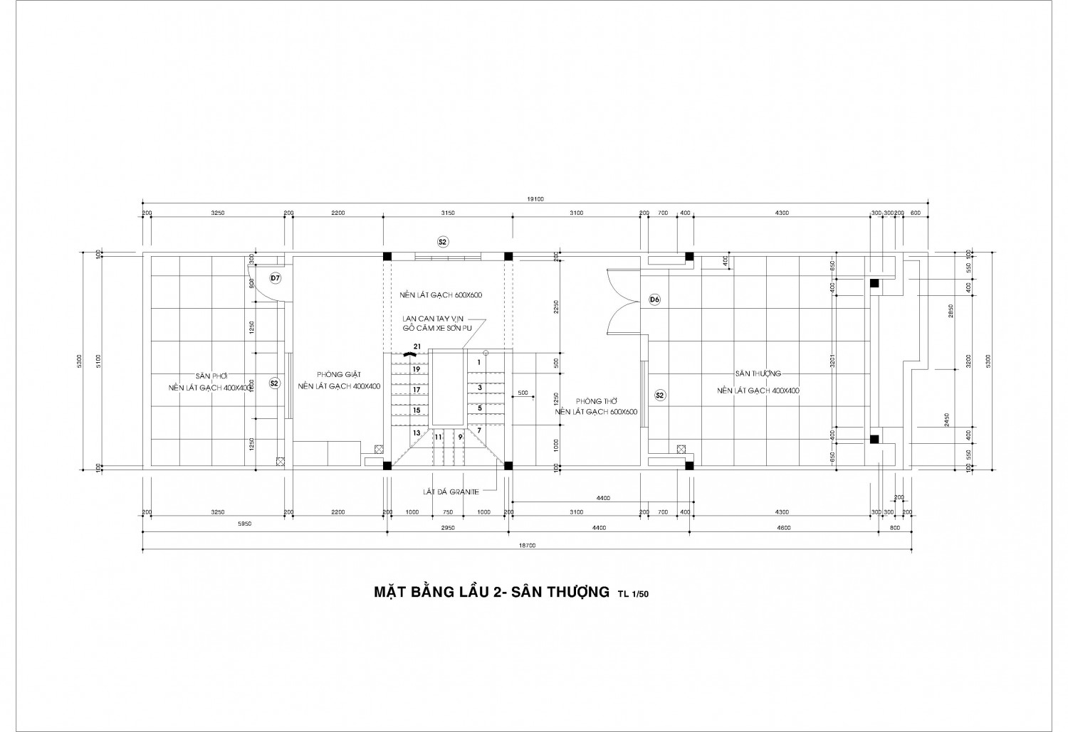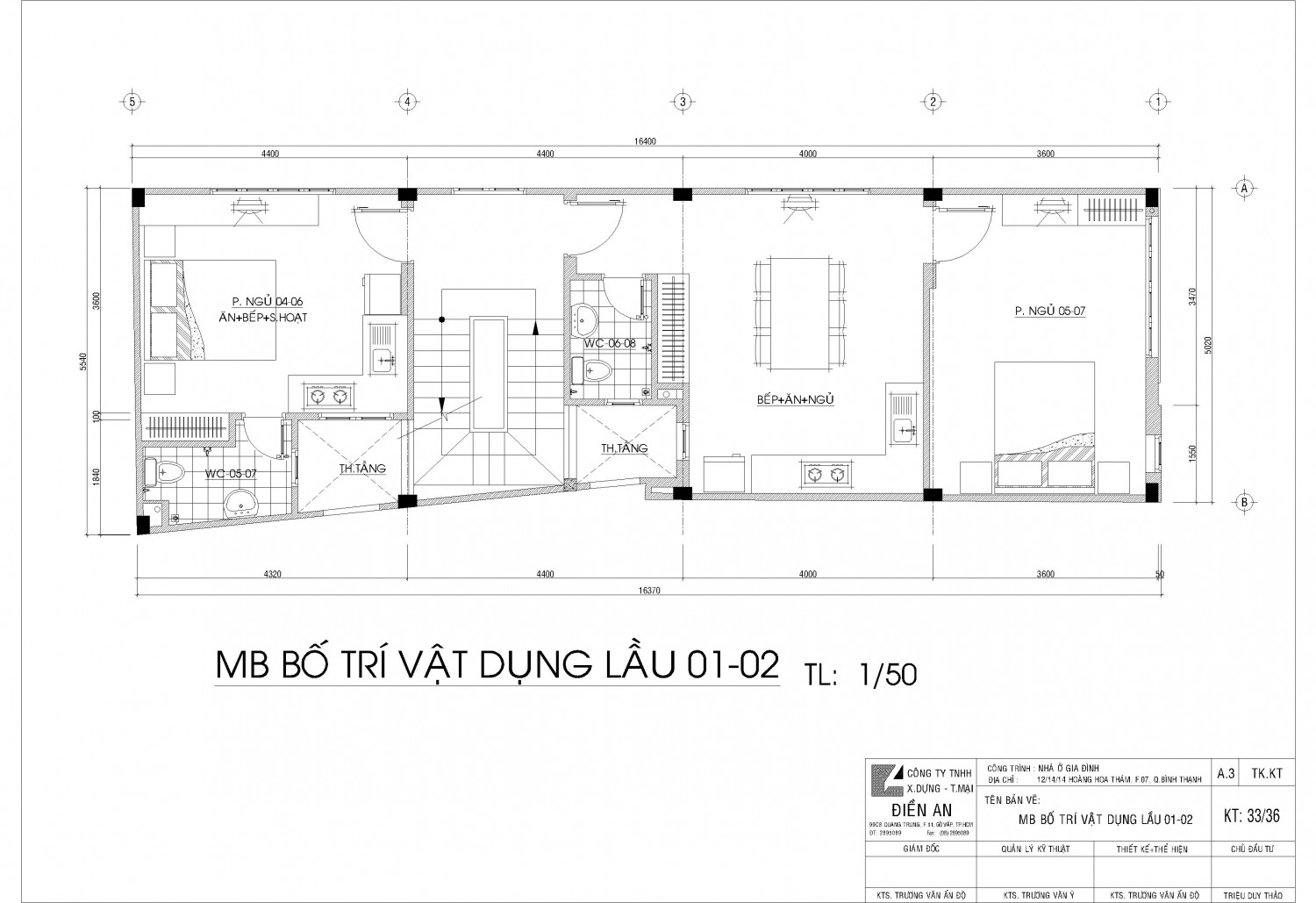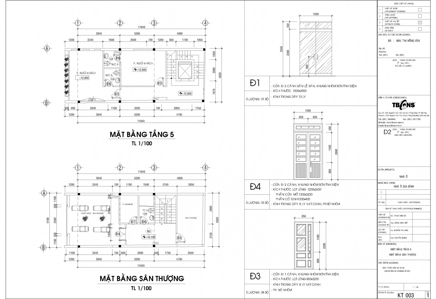 Mặt bằng vật dụng các tầng, mặt cắt, mặt đứng kích thước