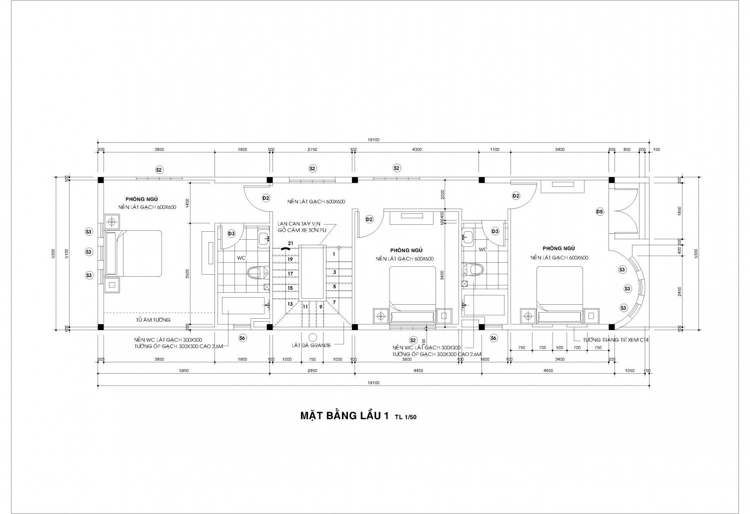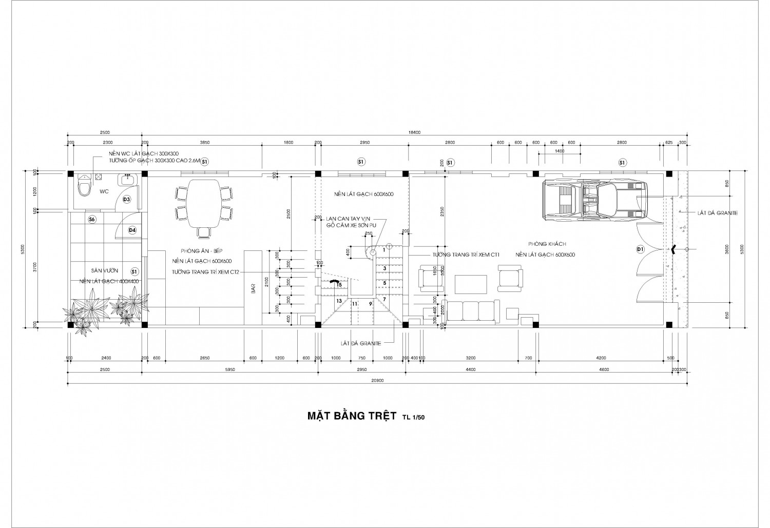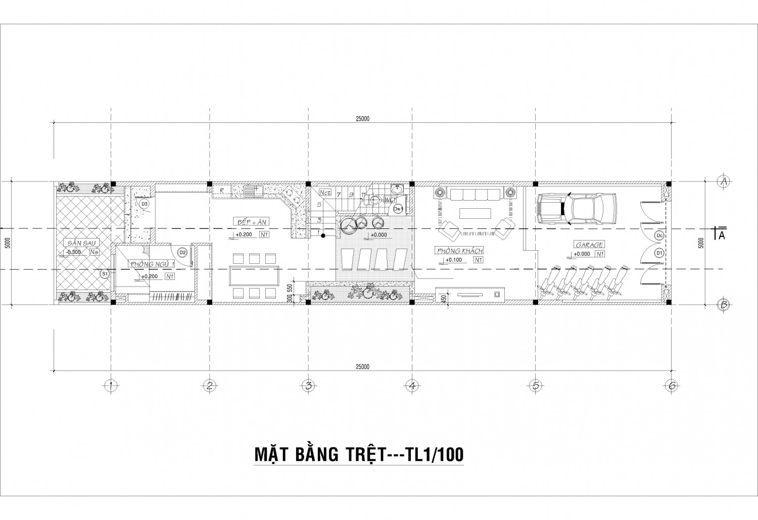 Bao gồm: 1 gara + 3 phòng ngủ + 3 WC