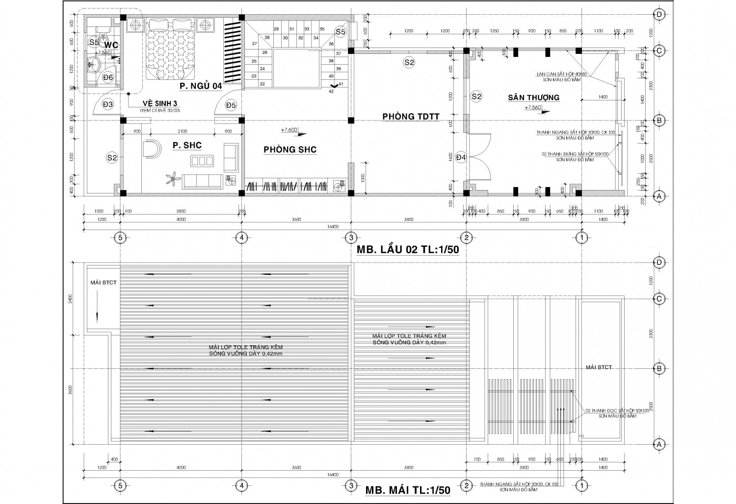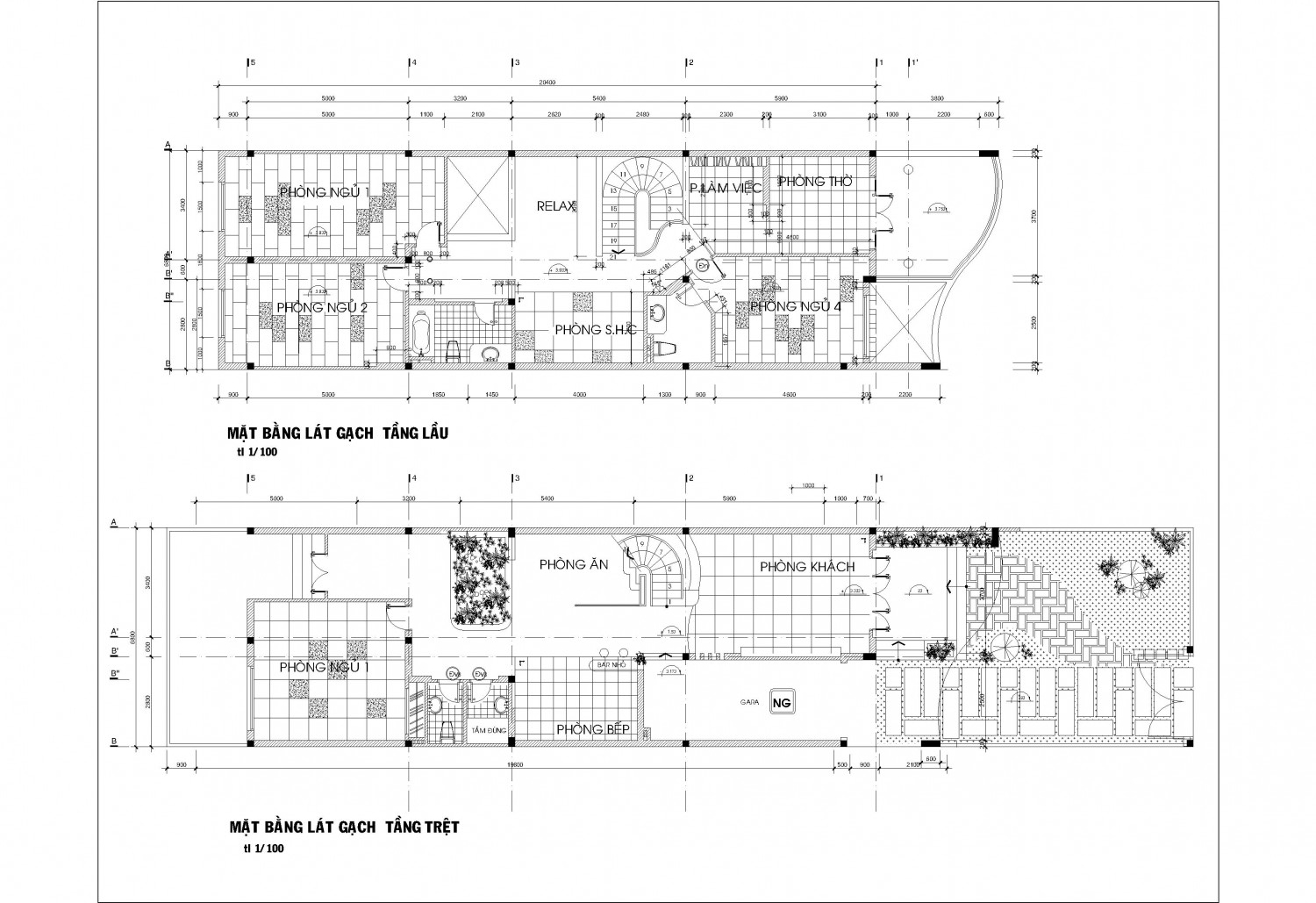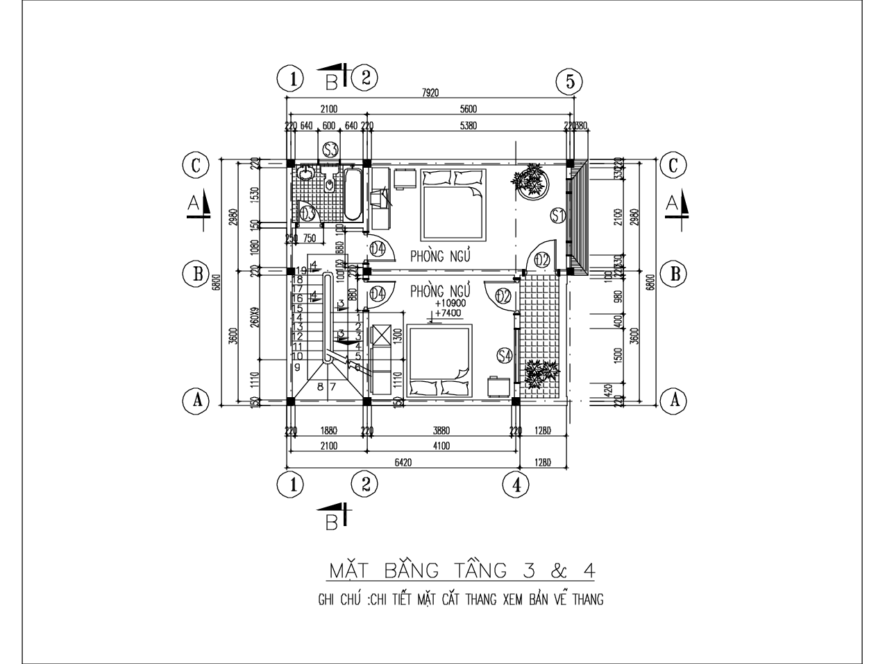Mặt bằng vật dụng các tầng, mặt cắt, mặt đứng kích thước