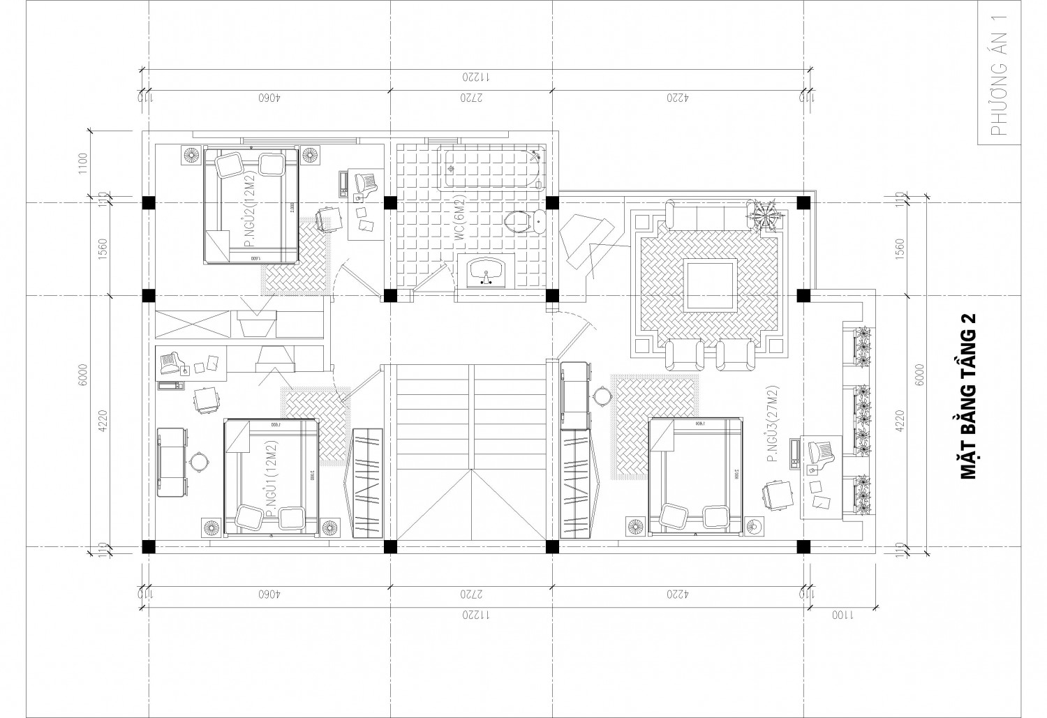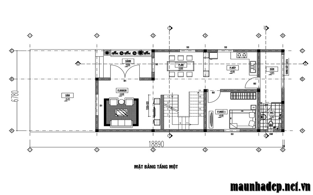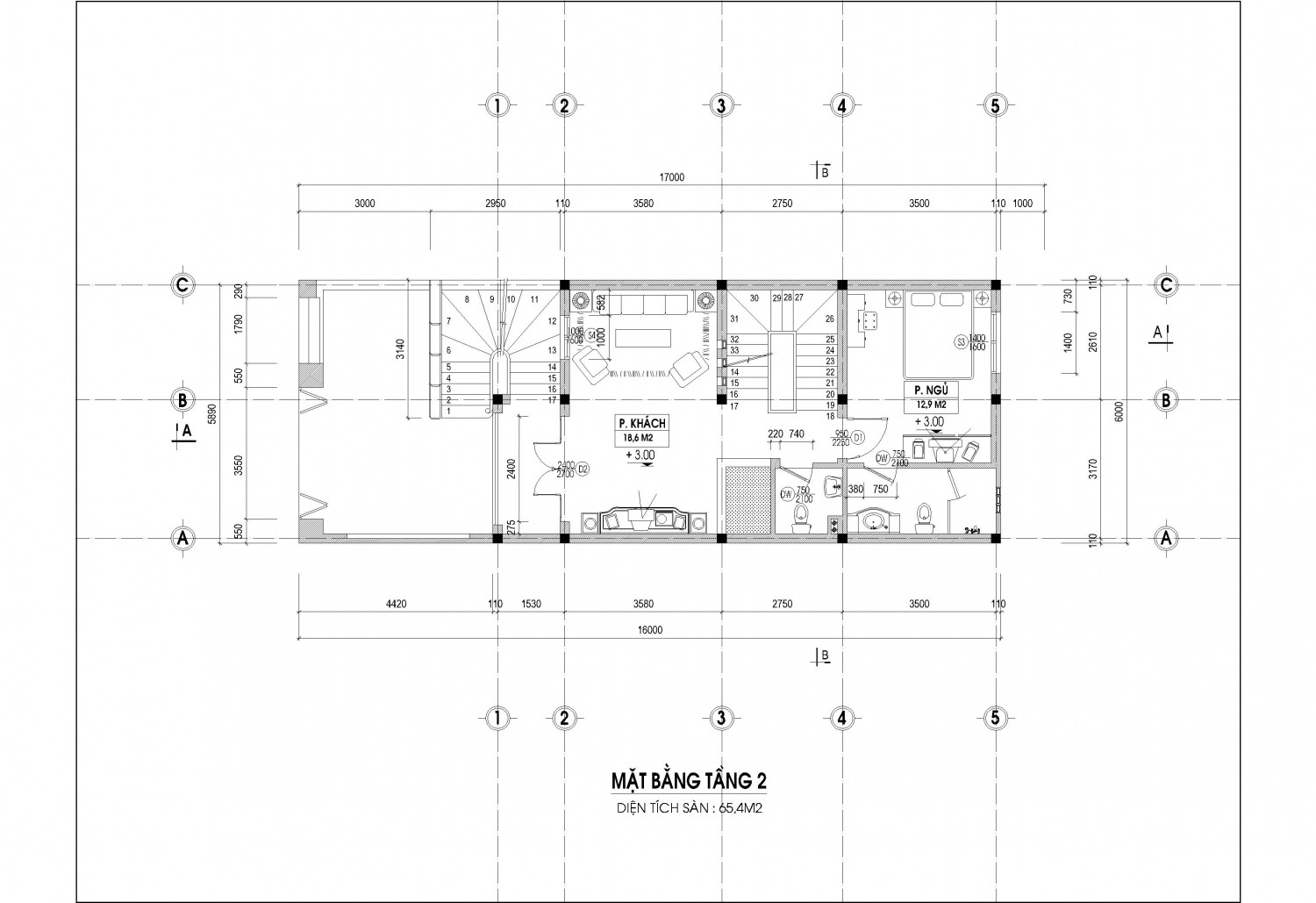 Tầng 2 : Phòng khách + Phòng ngủ + Wc