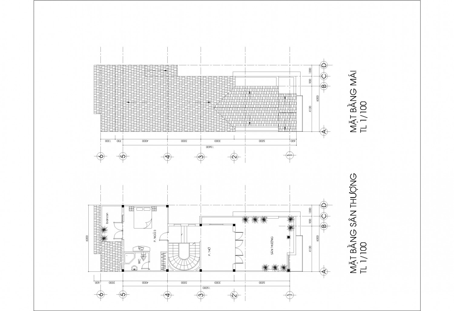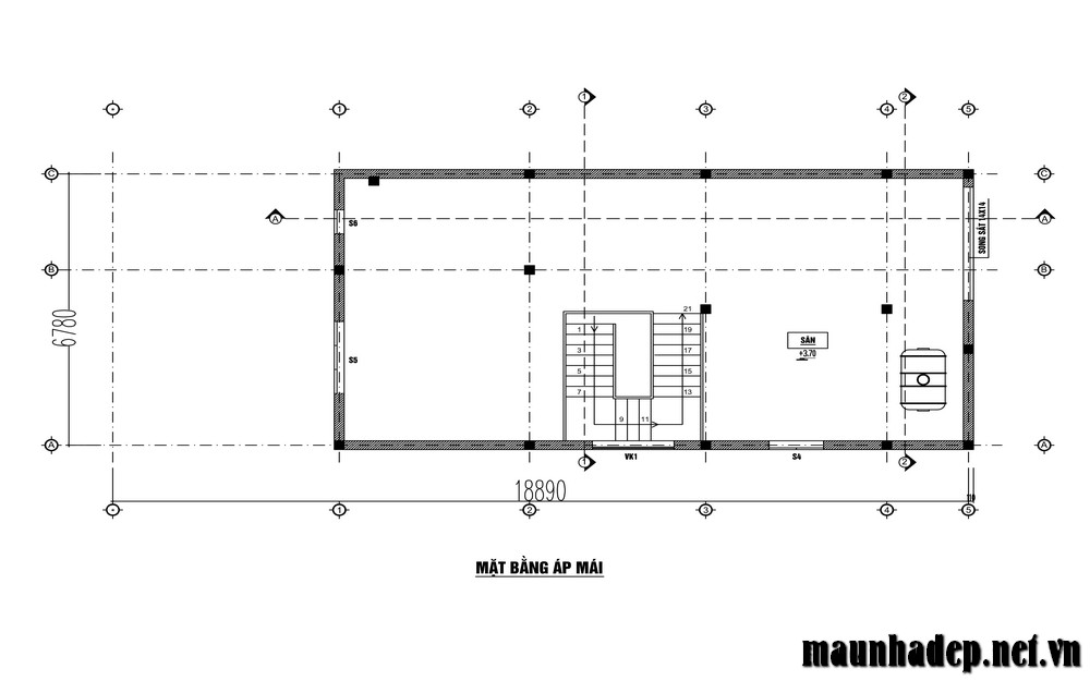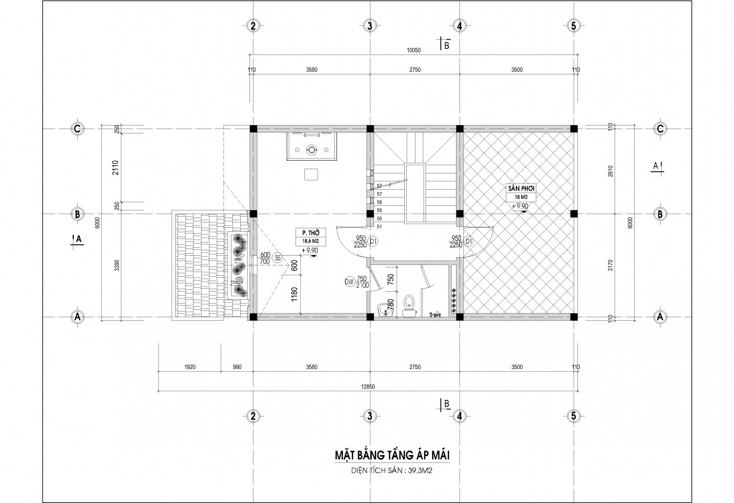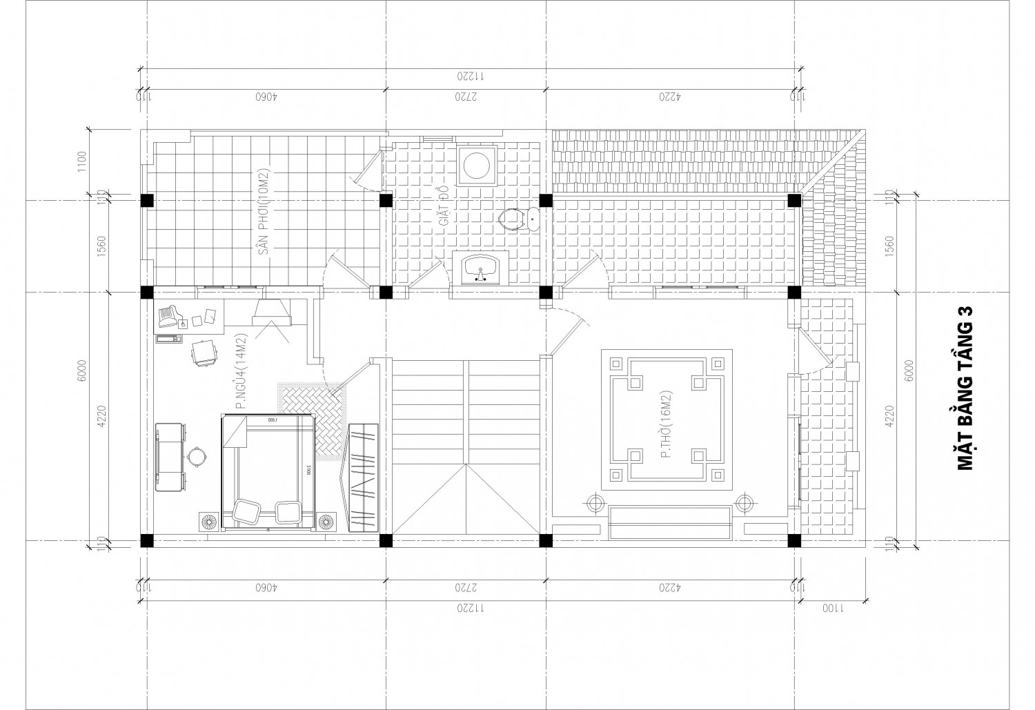 Tầng 5 : Phòng thờ + Sân phơi + Phòng giặt + Phòng uống trà - cây cảnh
